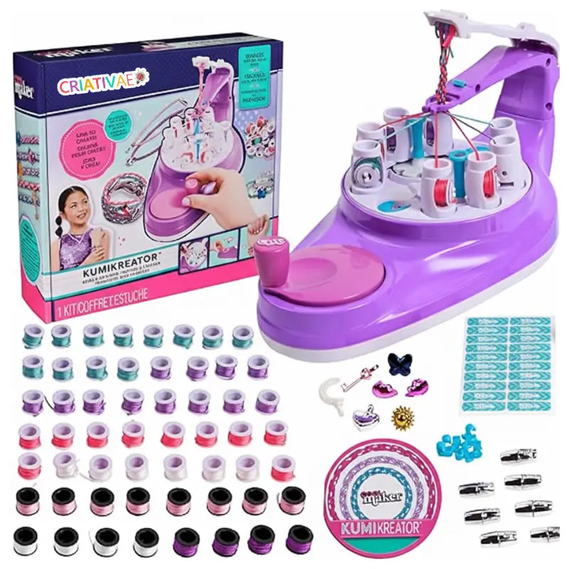 Traga para casa o antigo arte japonês do Kumihimo (“fios entrelaçados”) e deixe as crianças criarem e usarem suas próprias pulseiras e colares cheios de cor, estilo e significado. A máquina de trançar pulseiras e colares torna tudo rápido, divertido e fácil — um verdadeiro convite à criatividade!