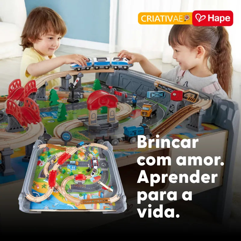 - Versatilidade: Quando os trens descansam, a superfície plana da mesa é perfeita para outras atividades criativas e pedagógicas.